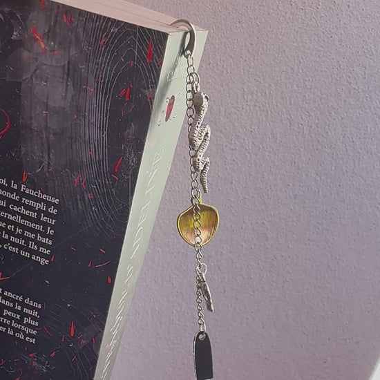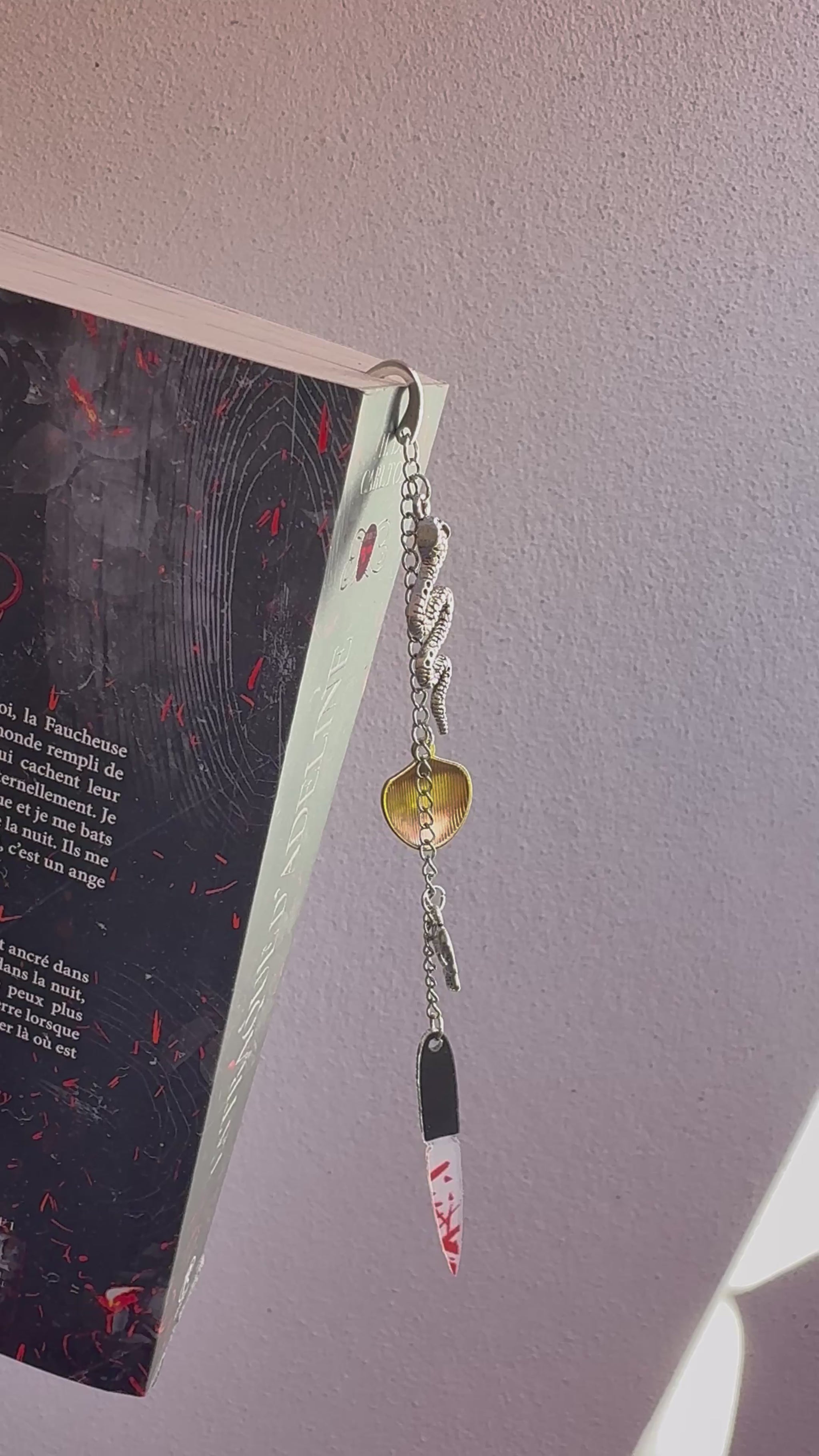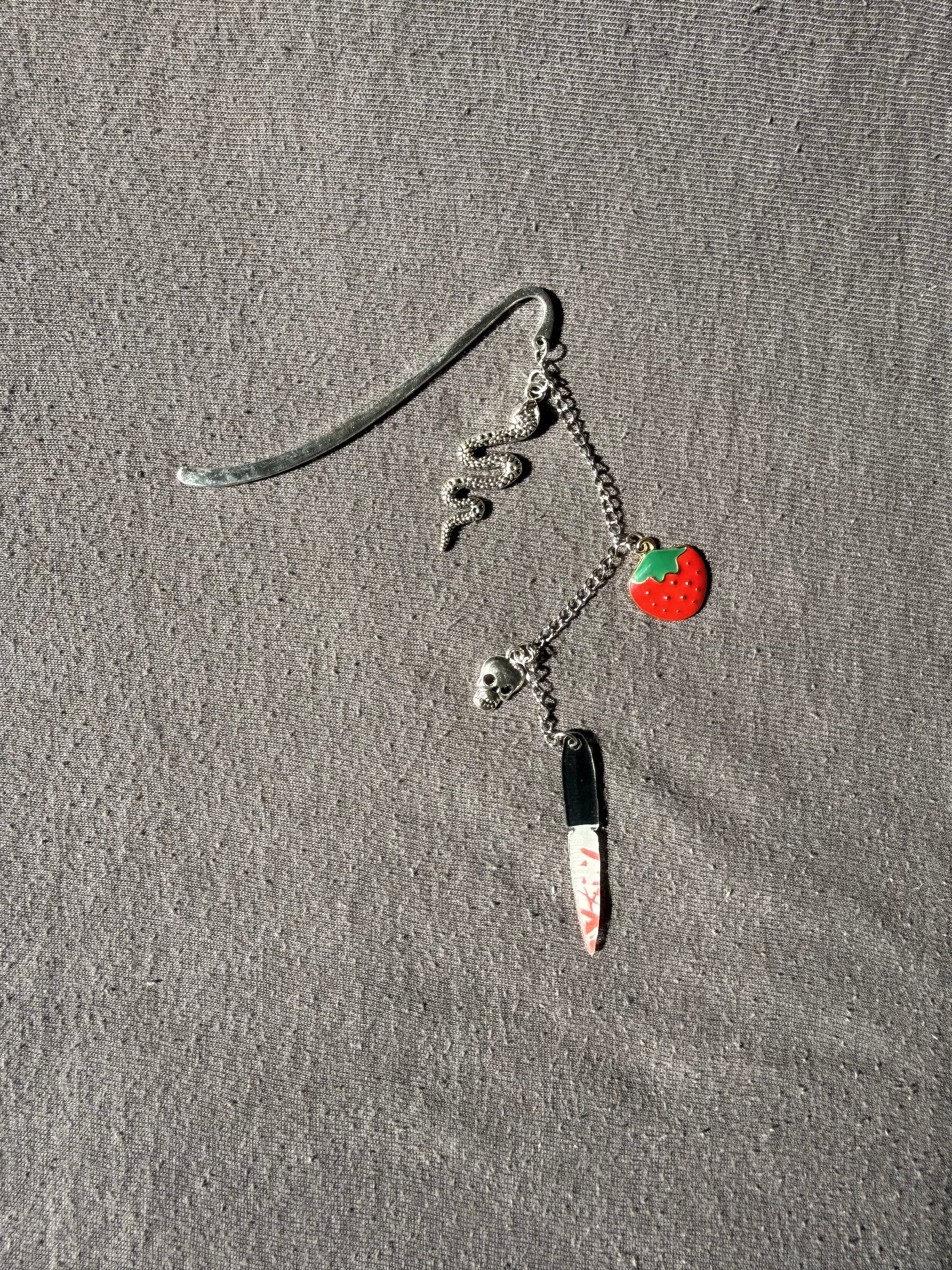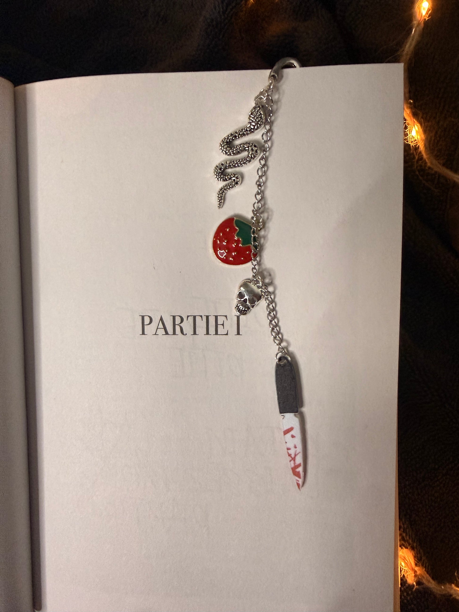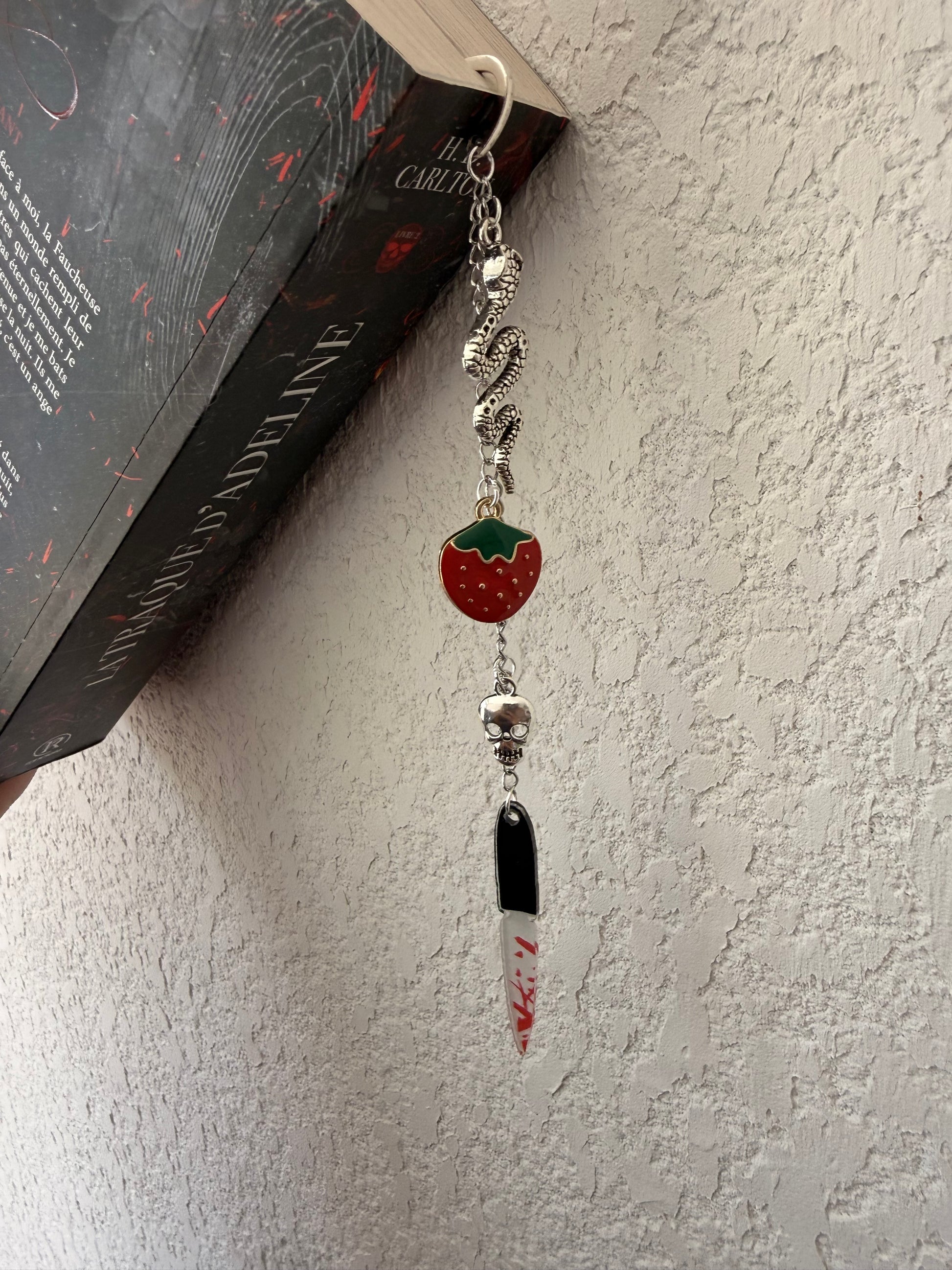 Un contraste parfait entre douceur et danger. Ce marque-page bijou mêle fraise, serpent et détails tranchants pour une vibe dark et addictive. Idéal pour les lectures intenses qui te tiennent éveillée jusqu’à la dernière page.