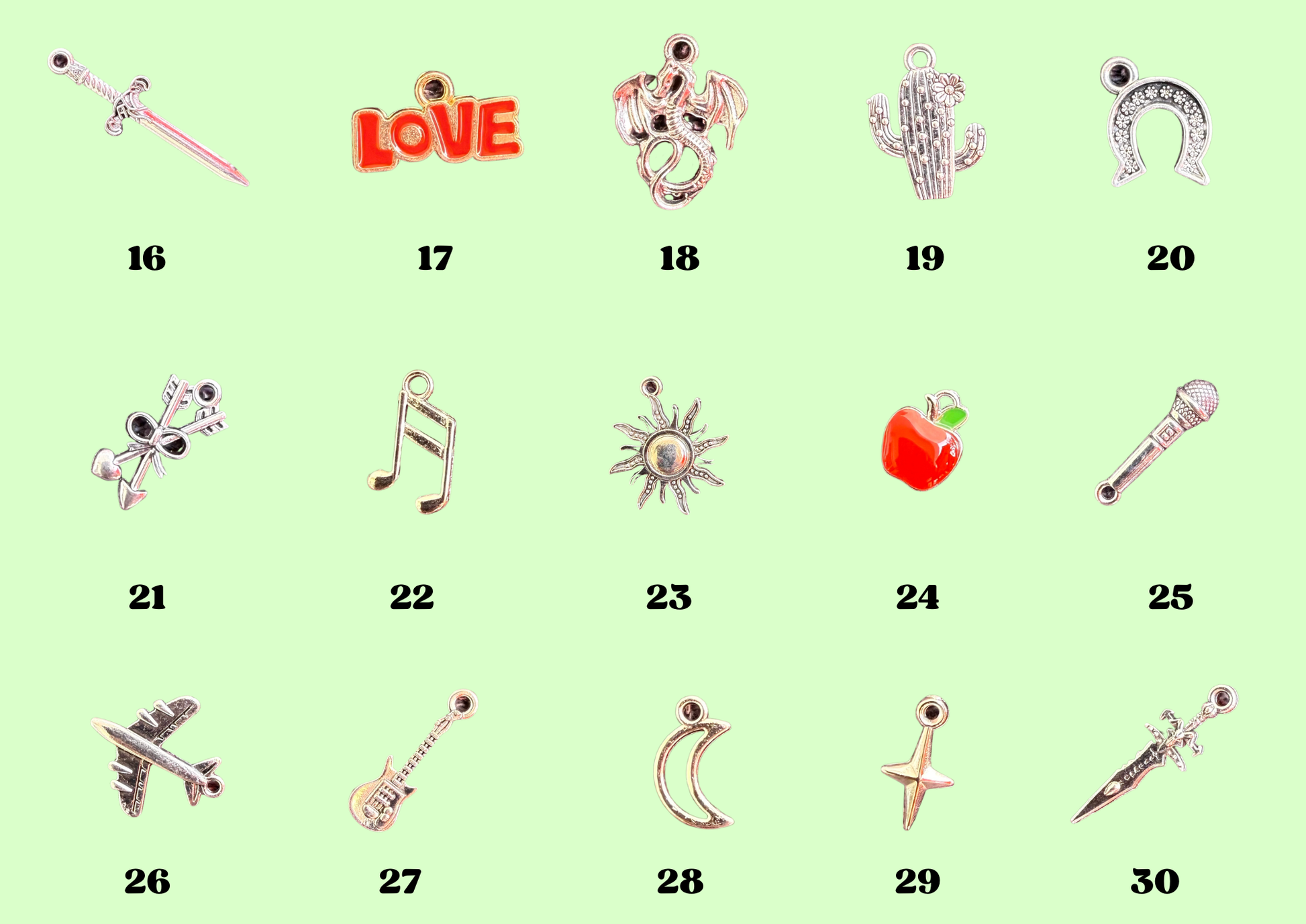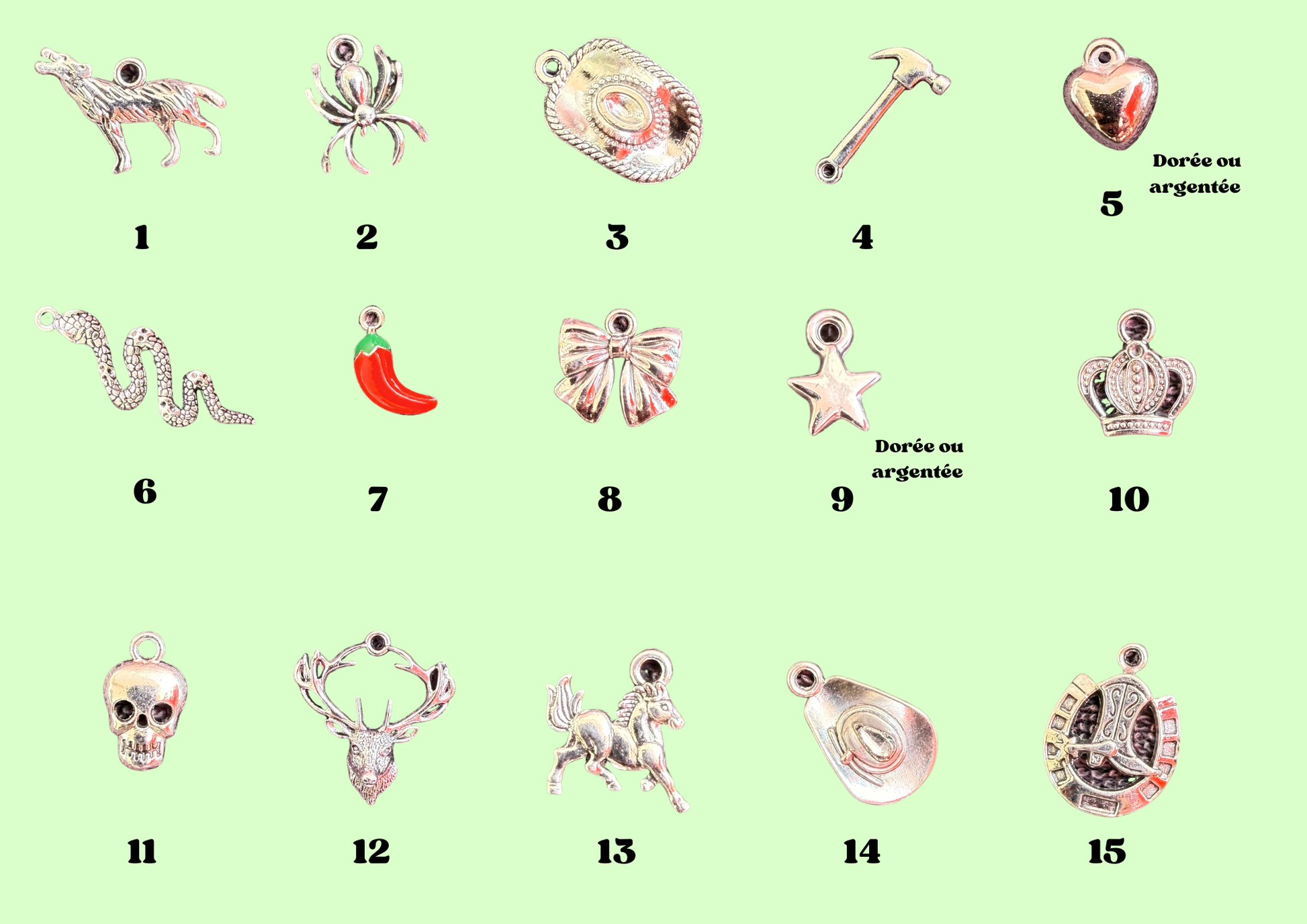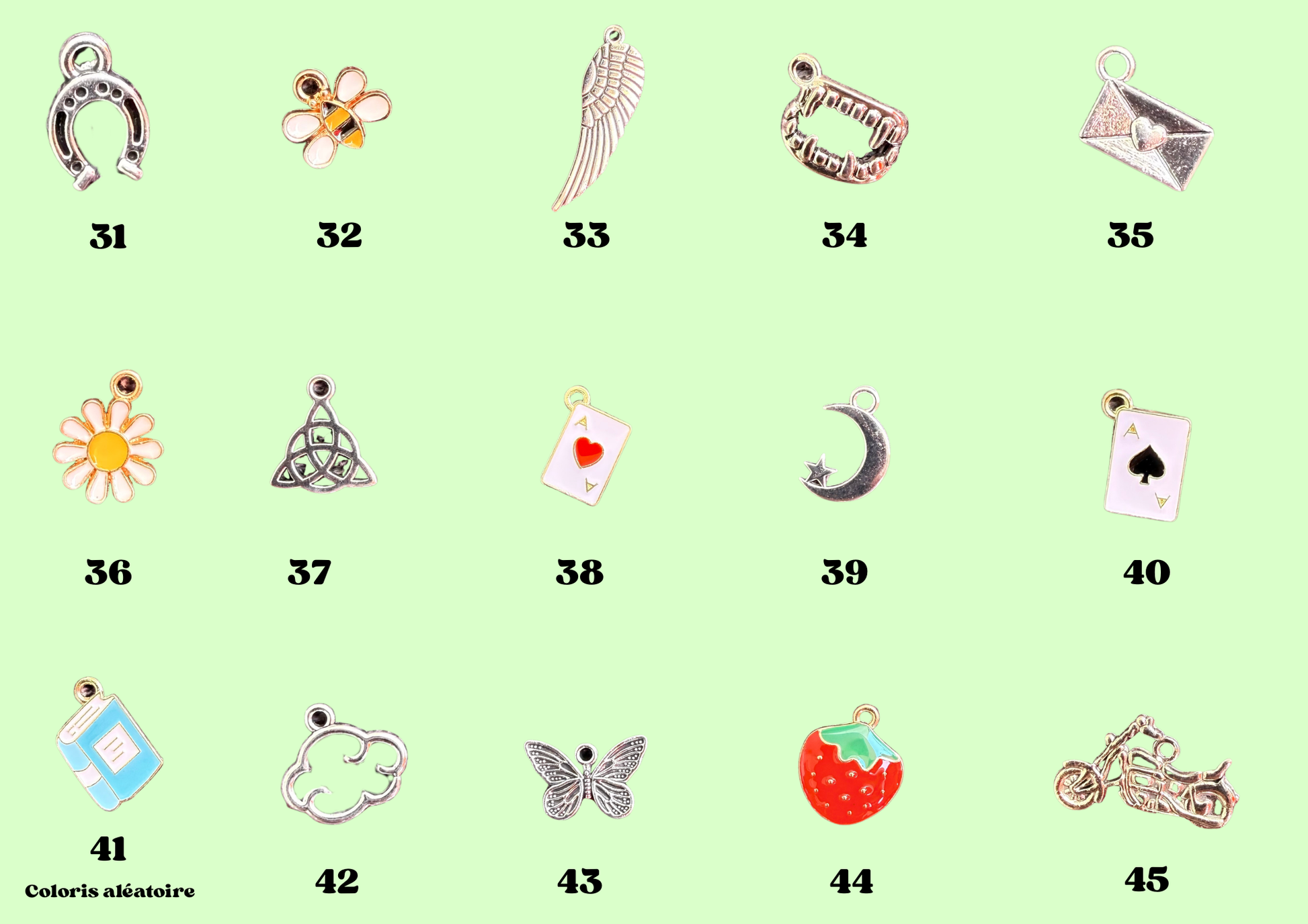 - choisis 4 charms parmi la sélection et indique leurs numéro