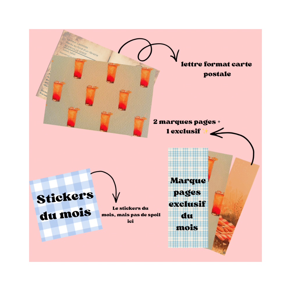 Chaque mois, tu recevras dans ta boite au lettre une enveloppe pensée comme une parenthèse de douceur autour de la lecture. Un moment, simple, intime.