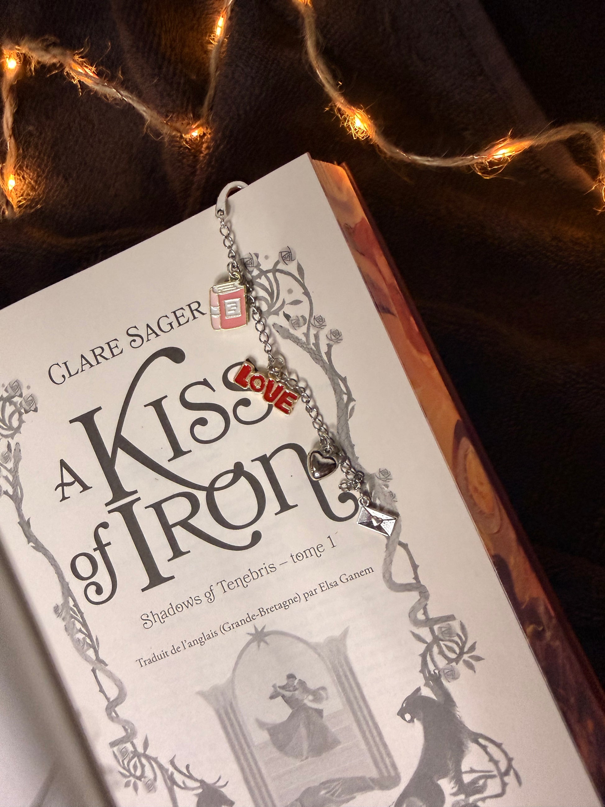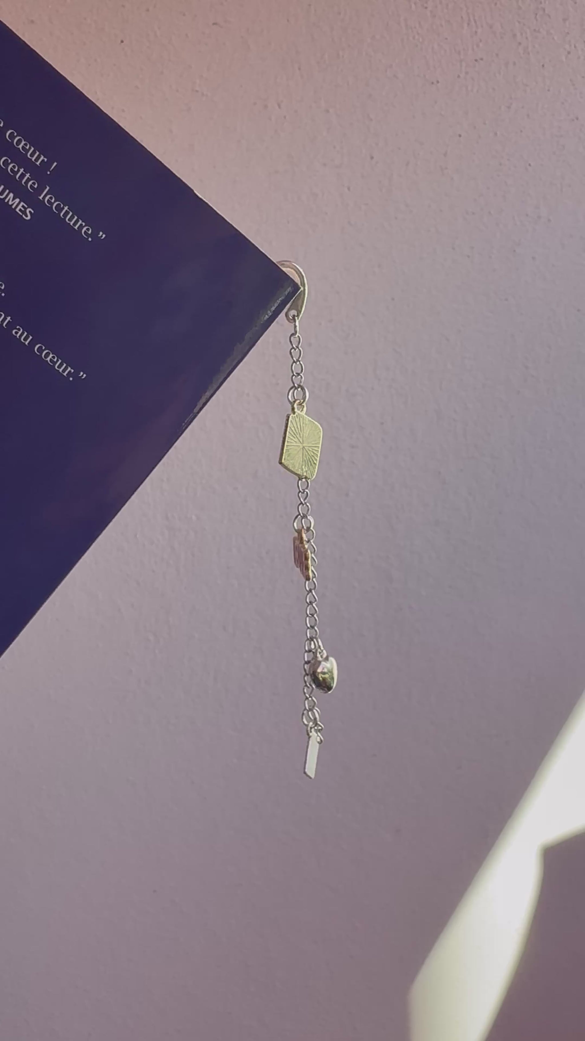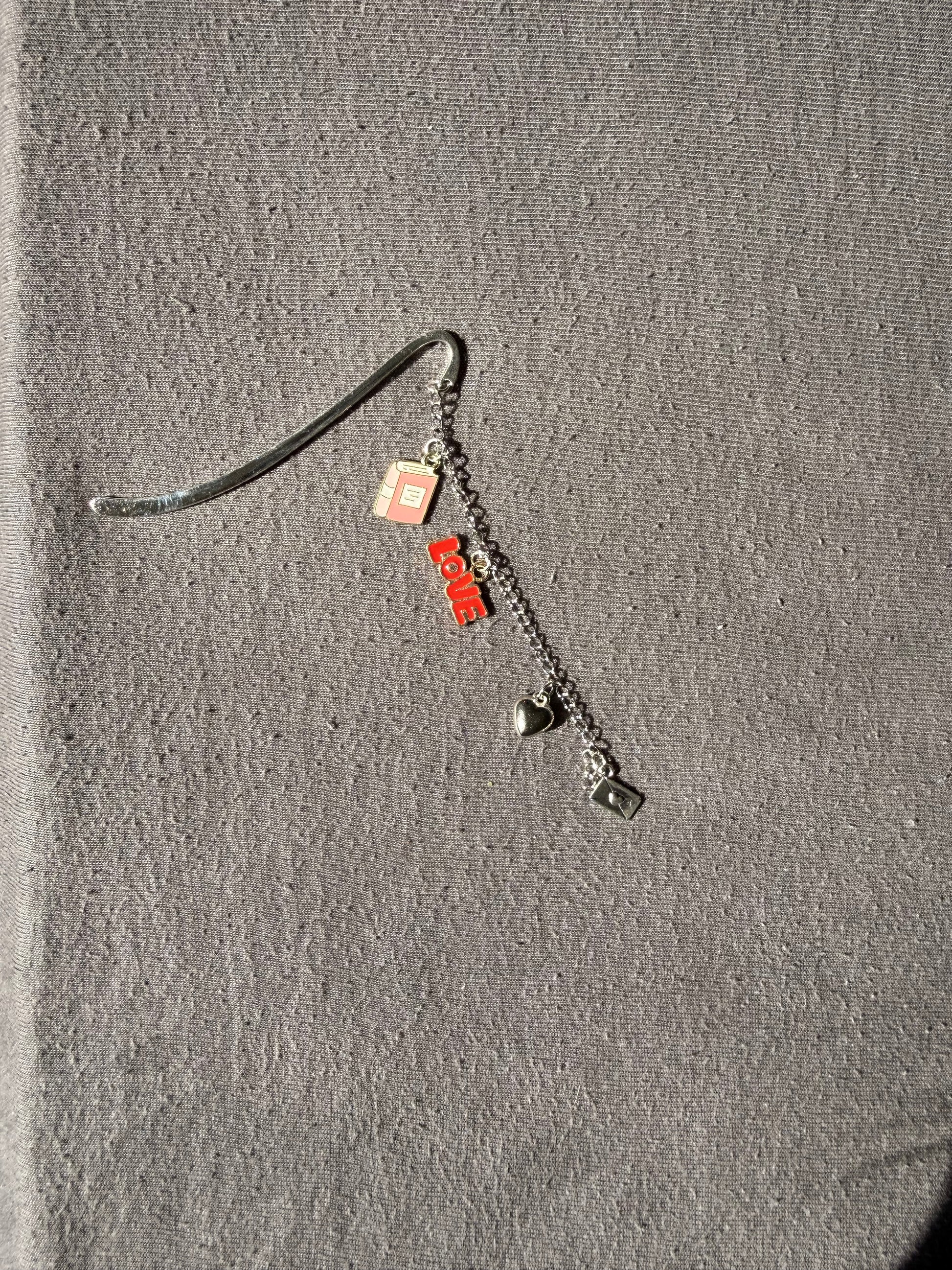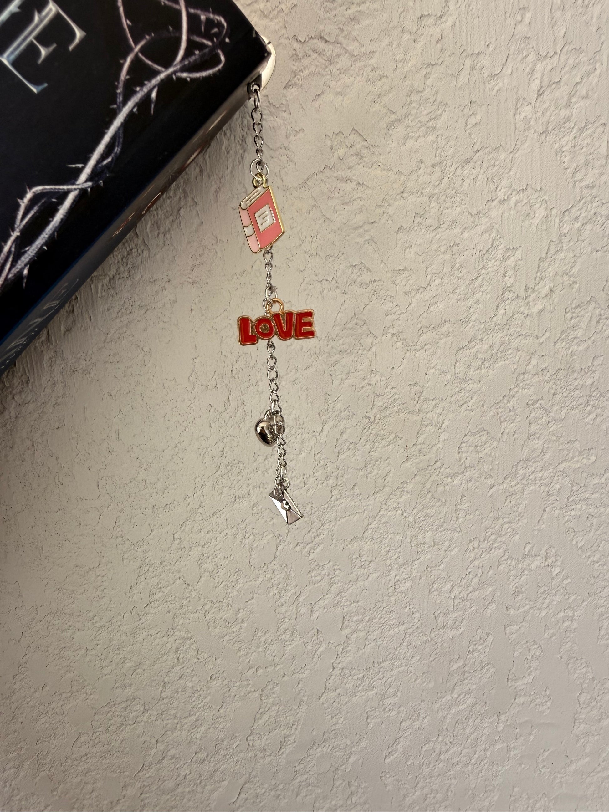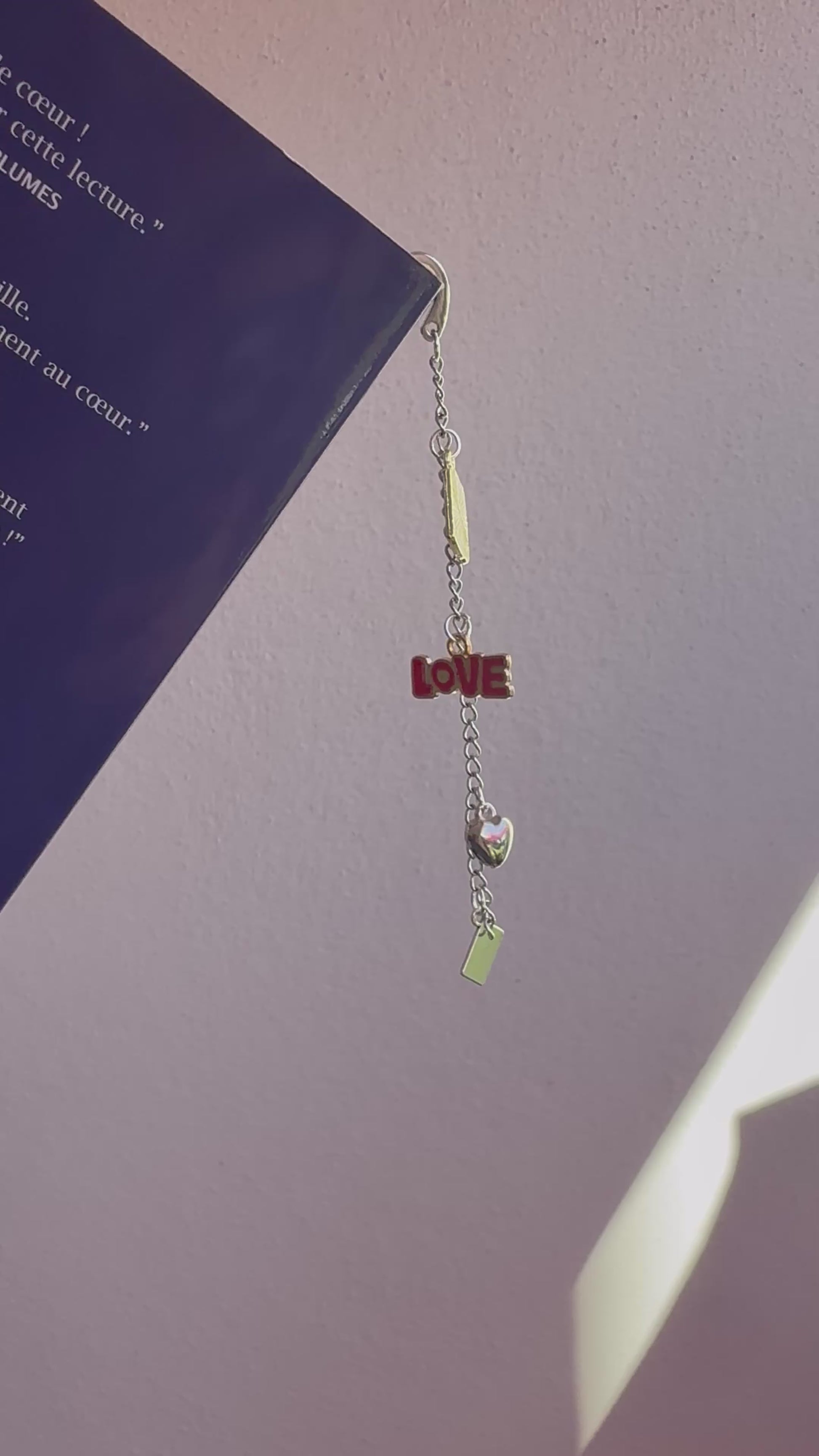 Un marque-page bijou délicat et romantique. Livre, cœur et lettre d’amour s’entrelacent pour accompagner les histoires qui font battre le cœur. Le détail parfait pour les lectrices de romances.